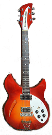 2019 Fireglo Fickenbacker Homemade Rickenbacker* 330 Copy. Made as original except Rick used Maple plywood for the back and top. Mine is made of two solid piesce of Maple, routed out to be hollow, then glued together.