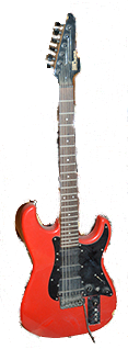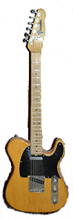1984 Franker II. This is the first homemade guitar made. The neck is from the first attempt at making a Tele* neck with the stripe in the back. It didn't work out so well. Painted with automotive paint.