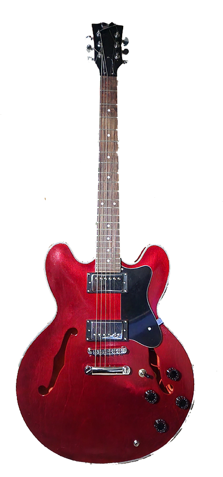 2019 Fireglo Fickenbacker Homemade Rickenbacker* 330 Copy. Made as original except Rick used Maple plywood for the back and top. Mine is made of two solid piesce of Maple, routed out to be hollow, then glued together.